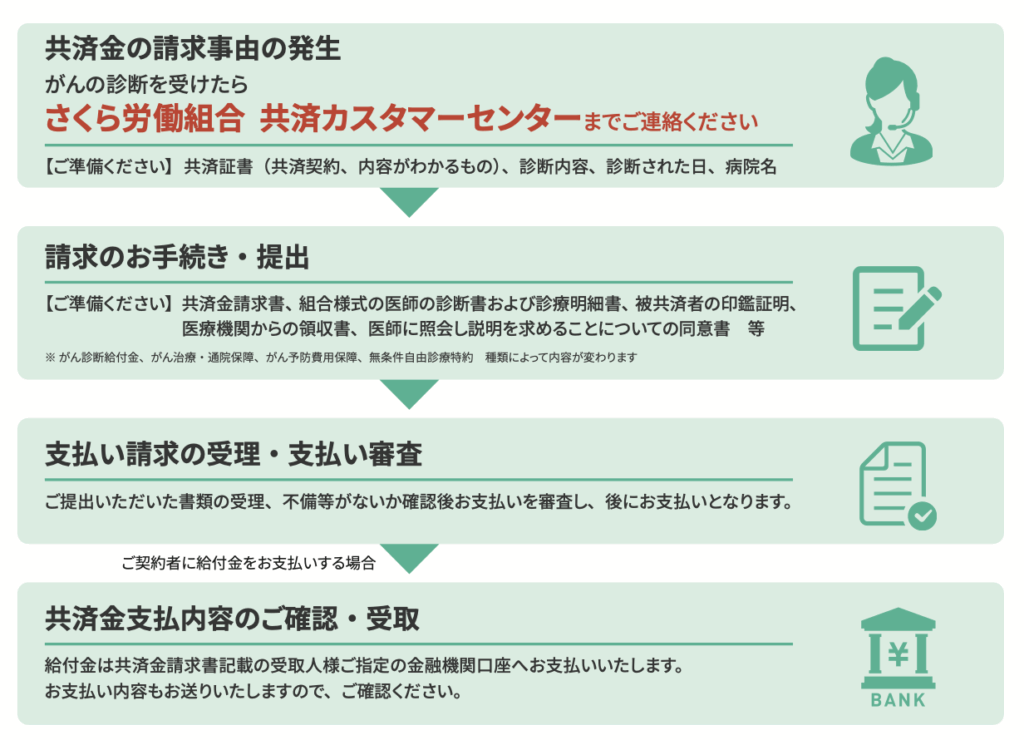 ウ . 無条件自由診療保障共済金の請求に必要な書類(必要事項が完備されていることを要します。)が組合に着いていること支払額支払額は、